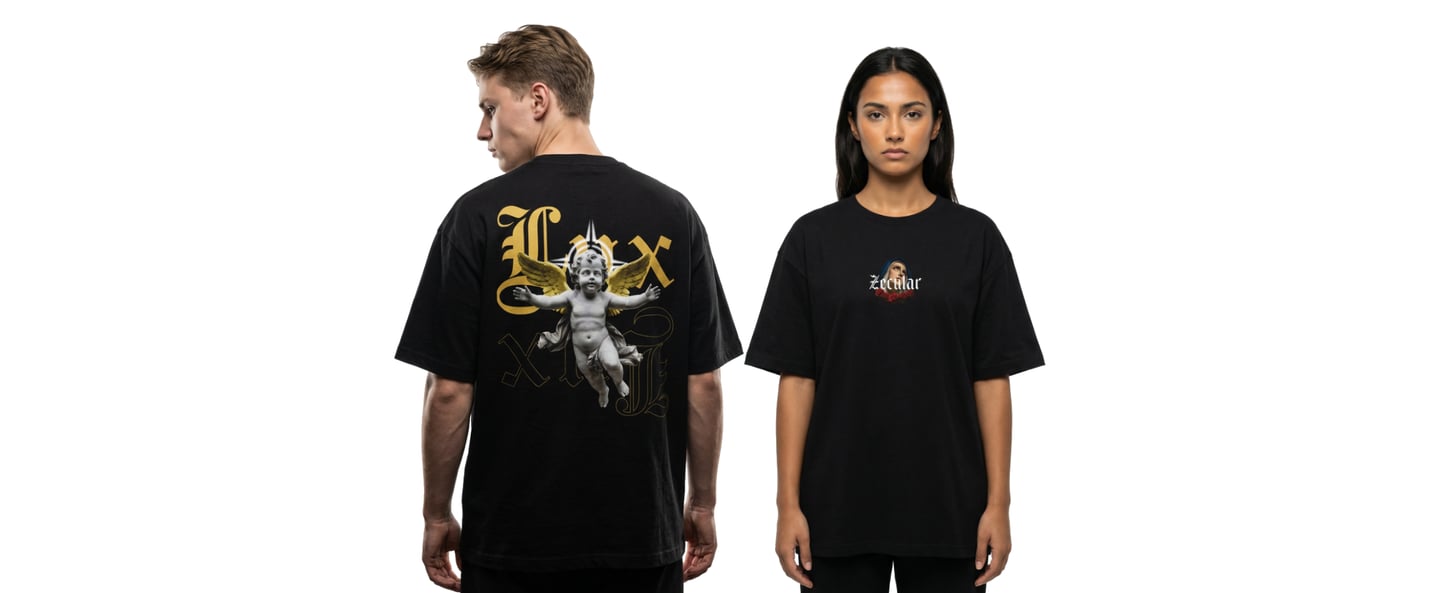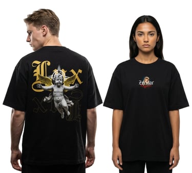 Zecular nace de la fascinación por la eterna dualidad humana, donde la luz y la oscuridad, lo divino y lo terrenal, coexisten en un mismo lienzo. Somos un manifiesto visual que desmantela la iconografía clásica y religiosa para reinterpretar su significado bajo el prisma de la conciencia y el diseño urbano.